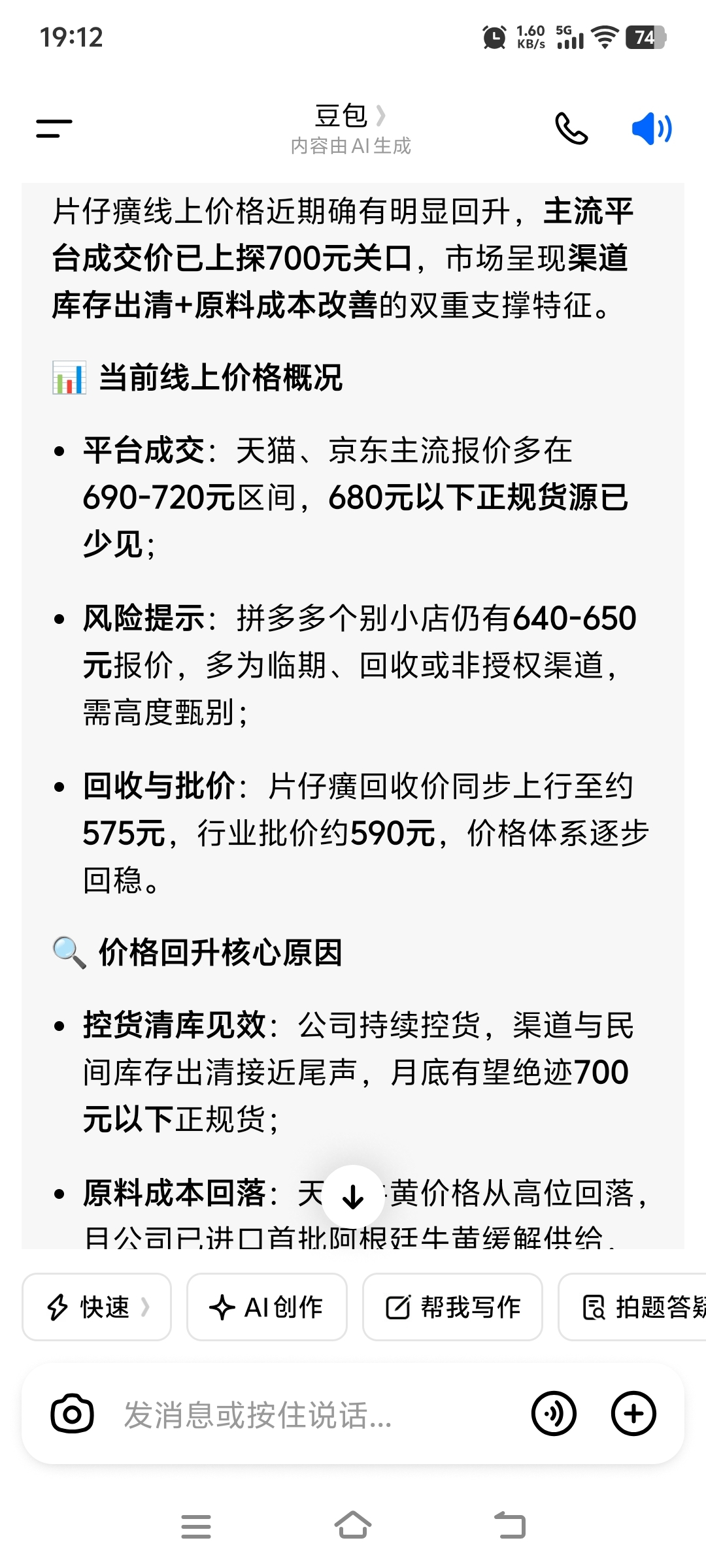 $片仔癀(SH600436)$ 片仔癀终端价格回升到了700附近了,月底有望站稳700大关了。这次片仔癀控货保价决心很大,短期销量下跌换来渠道出清价格回升定价权慢慢回到公司手上还是很值得的。控货保价很成功,预期二季度会渠道放货了,三季度正常发货了,我一直判断今年3季度正常发货叠加牛黄红利,三季度扣非利润同比增长150%是有依据的。相对2027业绩更好预测业绩在40-43亿对应PE只有22倍,也就是说2027年PE是历史最低了。我预计2029年业绩会超过50亿。所以片仔癀三年扣非增长将超过150%