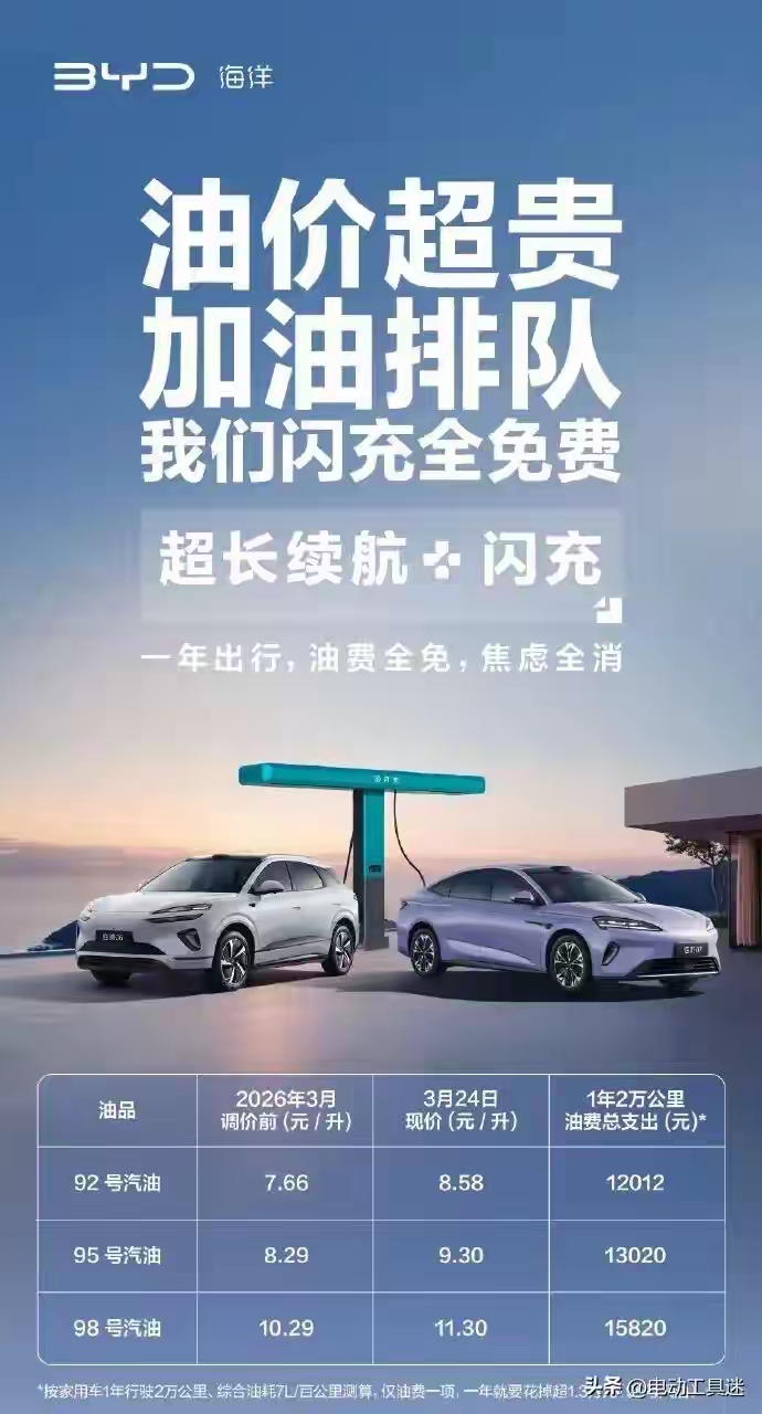 油价上涨了,更多的用户选择了新能源车,也会有更多用户选择比亚迪的闪充车型,或者其他拥有类似功能的新车。