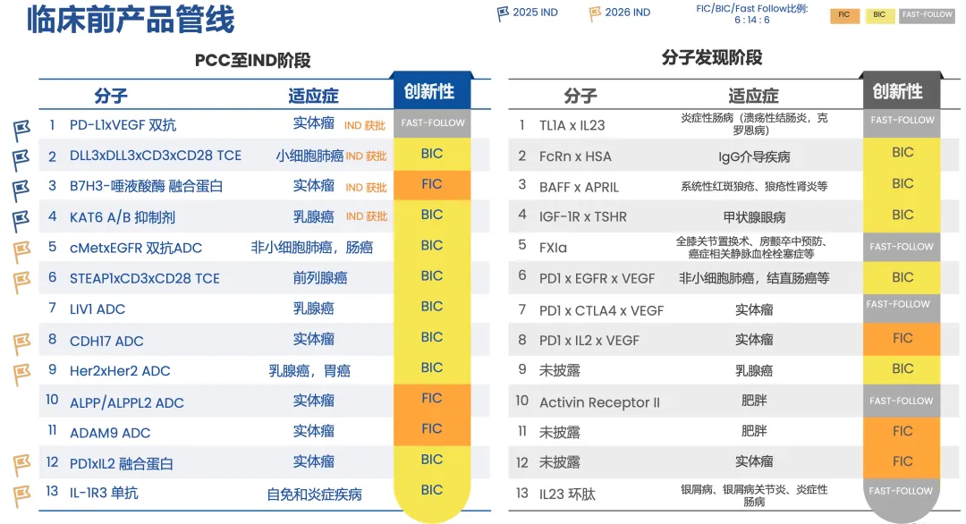 2025年研发投入25亿元,在新生代创新药企(不包括传统Big pharma)中仅次于百济神州。全球化大药云集,不仅有PD-1单抗H药、PD-L1 ADC HLX43、HER2单抗HLX22、EGFR单抗HLX07,还有喷薄而出的超20款早研新分子,以FIC/BIC为主。