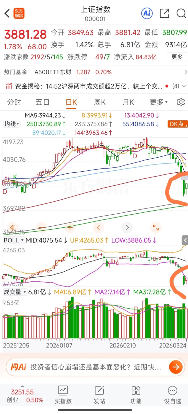盘中点评提示文章写完之后,我就该忙啥忙啥,该干啥干啥了,基本没有看行情,到了午盘收盘的时候,看了一下大盘的走势,午盘收在3849点,仍然在正常运行当中,也没出乎我的意料之外,我都要大家躺平了,午评也就没什么要谈的了,所以今天午间就没有再做午评,后面也看了一下评论区,还有粉丝问我能不能补仓的事,我都要大家先躺平到3957点,你说可以补仓不?这不是很明显的事吗?还用回答吗?如果信任我,今天下午还到过3830点之下,也是今天的次低点哟。