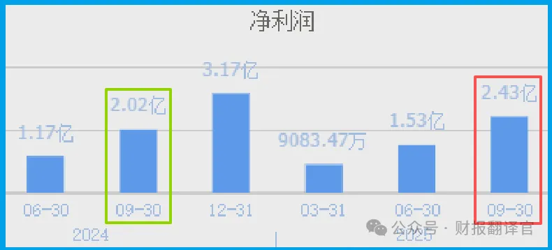 我翻到利润表。2025年前三季度净利润2.43亿,同比增长20.38%。