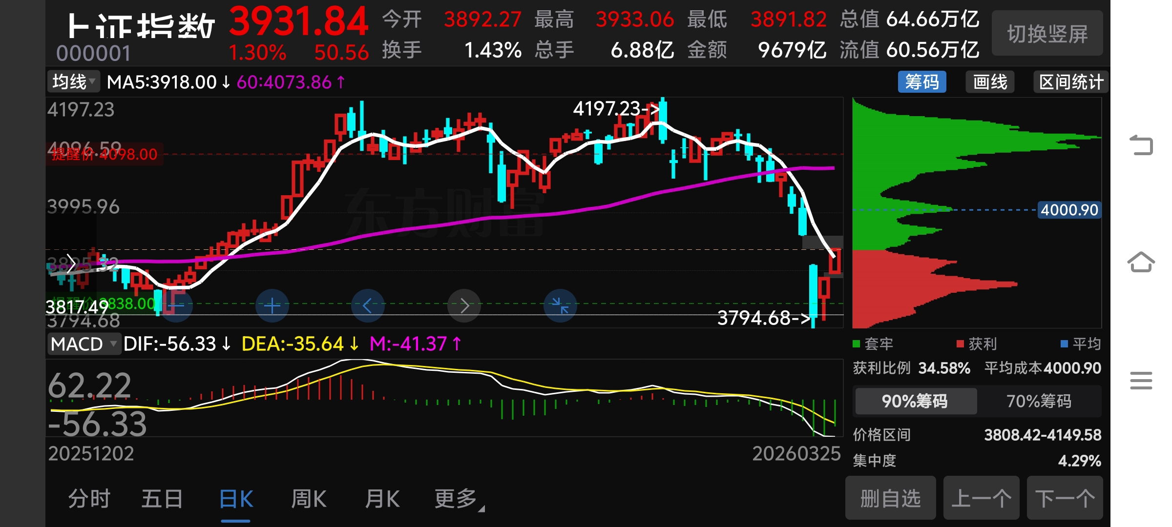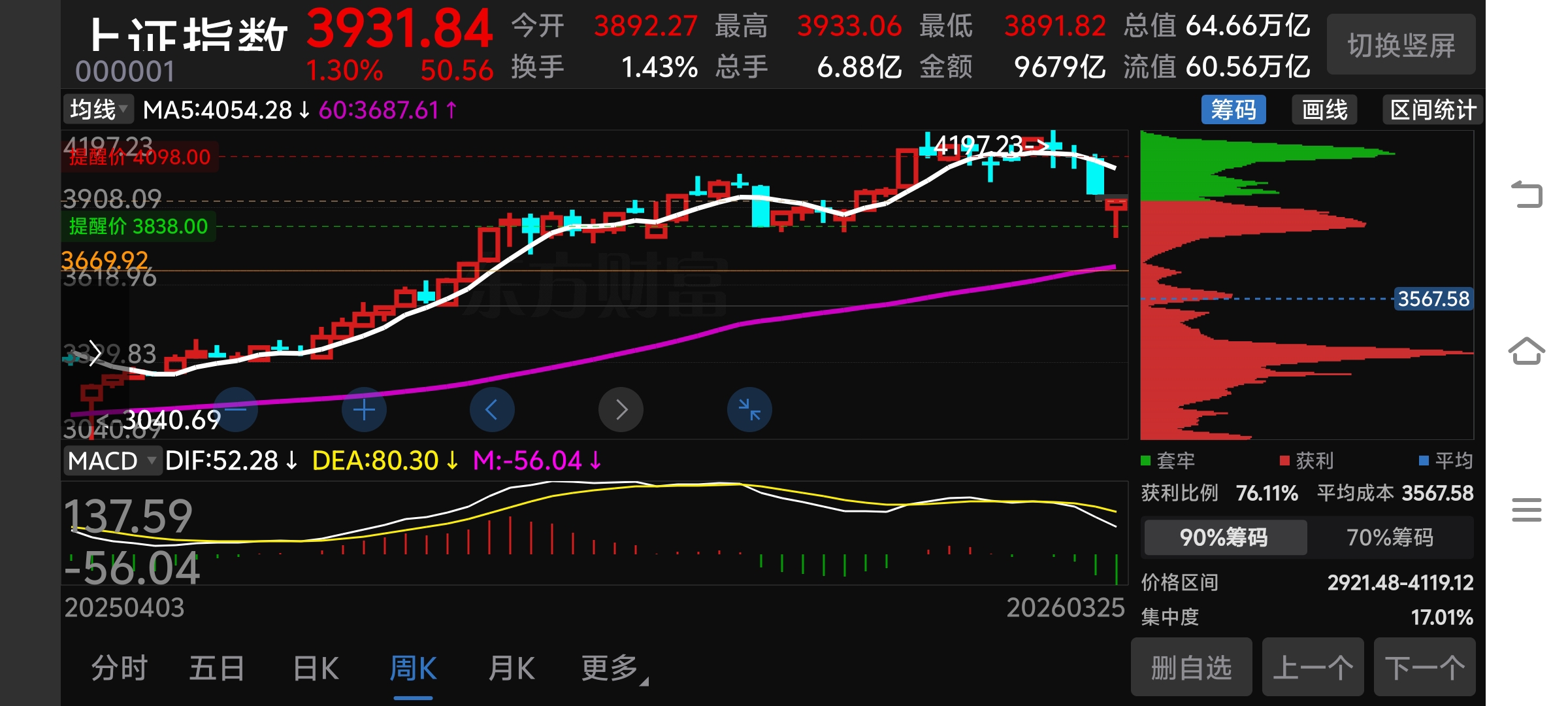$上证指数(SH000001)$ 今日大盘指数分析:今日大盘指数日线和周线都出现底背离共振,明日继续创新高几率大。但是大盘指数日线和周线macd在0轴下方,距离0轴还很远所以目前以观望和高抛低吸为主。日线macd处于0轴以下距离0轴还远,下跌量能减少。周线macd处于0轴以下距离0轴还远,下跌量能今日最大。等待下跌量能日线和周线都减少,日线下跌量能靠近0轴,形成金叉才是好的入场点。日线找买点,周线看趋势,日线和周线形成共振,菜可以入场,目前虽然处于底背离还不是好的入场点。如果明天补上上方缺口来根小阳,后天继续小阳线即确认前面的大阴线破位后已经止跌了。如果后面两天都不是阳线,即认为只是反弹而已。个人观点仅供参考!不喜勿喷,重在参与![得意 [得意]](http://gbfek.dfcfw.com/face/emot_default_28x28/emot18.png)