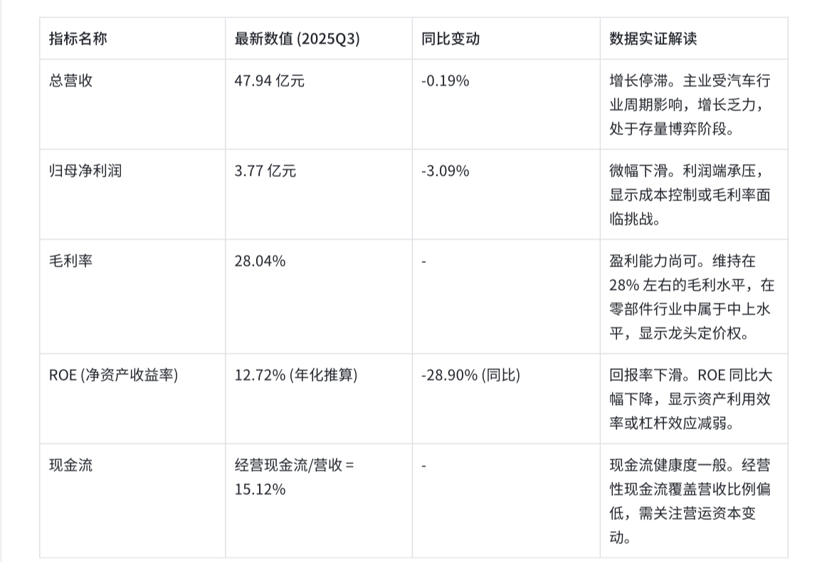 • 基本面:公司是全球汽车遮阳板绝对龙头,正向“大内饰+机器人”双轮驱动转型,传统主业现金流稳定,顶棚业务为核心增长曲线,人形机器人业务处于保密验证期,具备天然的客户协同优势与估值弹性;机构一致看好给出买入评级,综合评级为中性(持有)/谨慎推荐。