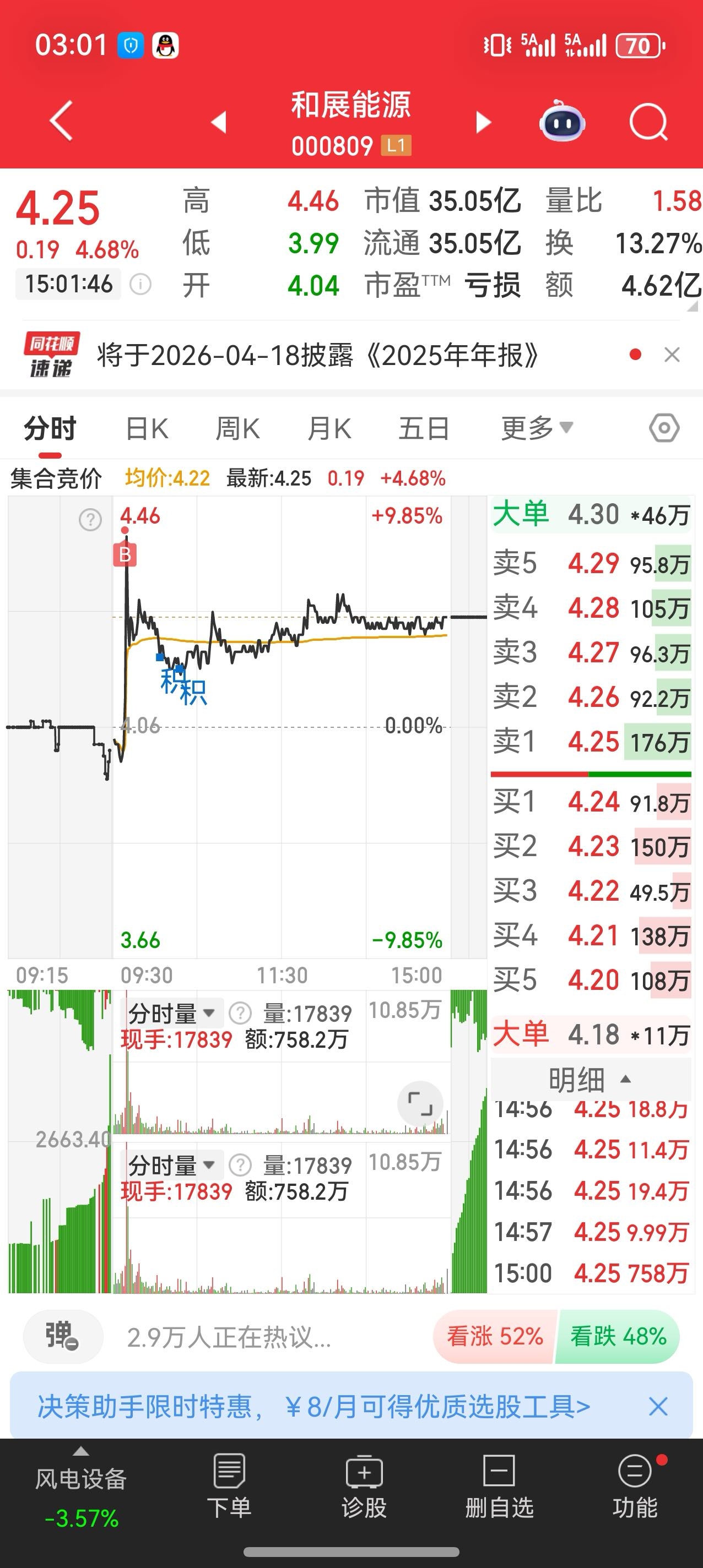 合展能源:差几毛钱封板,主力你是真勾啊?