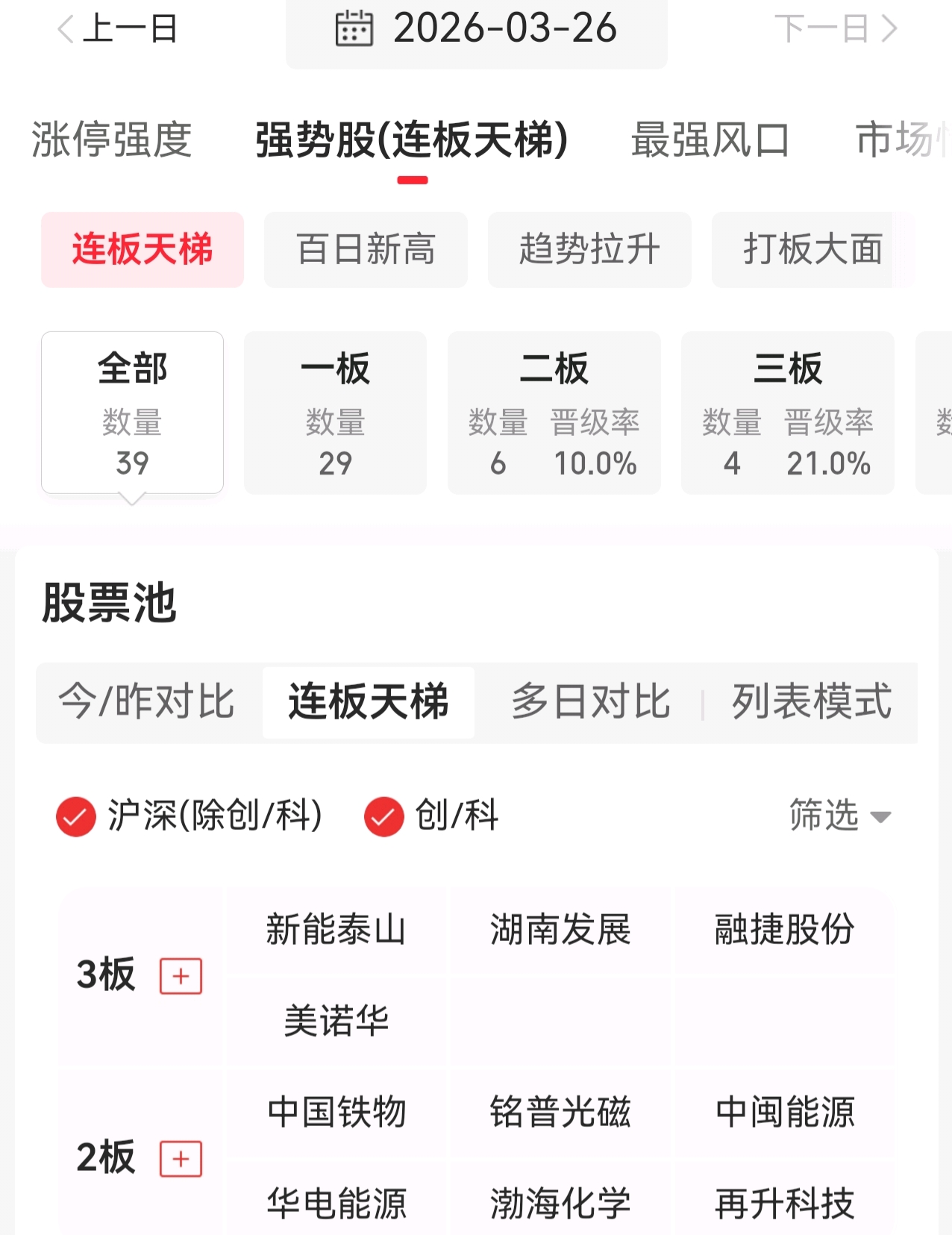 今天连板晋级率降低,主要是大盘调整,3板补涨节点票也仅4家晋级,整体还是比较难。