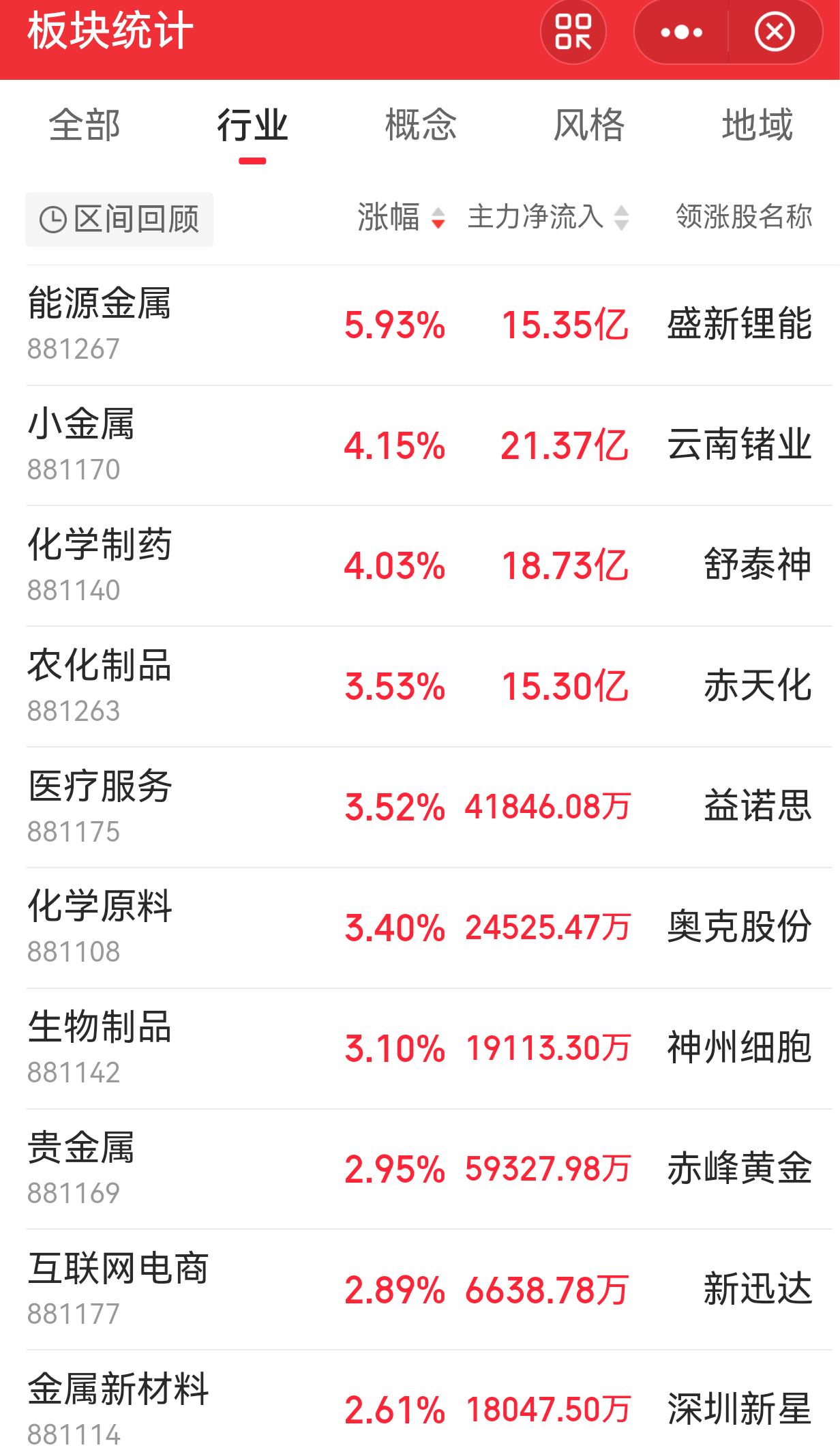 大家好,今天早盘A股三大指数小幅上涨,盘面上,能源金属、锂矿概念、阿兹海默、小金属、减肥药、CRO、单抗概念、草甘膦、重组蛋白、化学制药等板块涨幅居前,电力、煤炭、公用事业、银行、保险、铁路公路等板块走低。截至发文,个股方面涨多跌少,两市涨停个股73家,跌停3家,市场赚钱效应良好。
