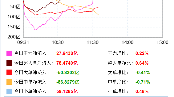 从资金面来看,北向资金目前无法看到实时交易额,主力资金早盘净流出32.30亿元,午后资金再度流入,目前净流入27.64亿元。量能方面,目前沪深两市成交额11406亿元,相比昨日同期成交量缩量6.88%,午后我会持续关注资金面流向。