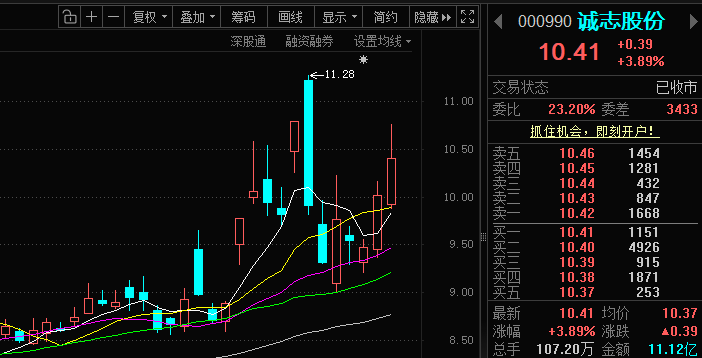 诚志股份(000990)今天诚志股份低开高走、放量大涨 3.89%,振幅近 9%,资金活跃,承接有力,延续昨天强势,属于强势反弹、多头主导的行情。今日也是叫兄弟们进了这支票,继续拿着就行,没跌破10的价位都可以继续拿着。