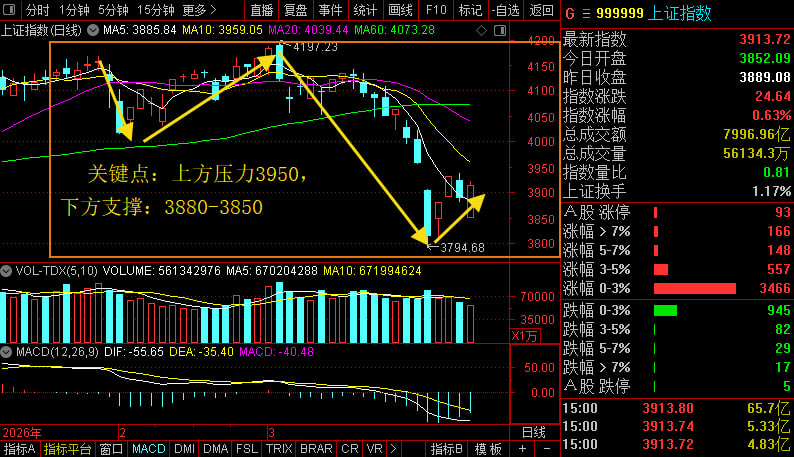 二,量能与个股方面:两市成交额约1.85万亿元,较昨日(1.94万亿元)缩量约900亿元;上涨个股4337家,下跌1073家;涨停93家,跌停5家,市场赚钱效应显著回暖,个股普涨态势凸显。