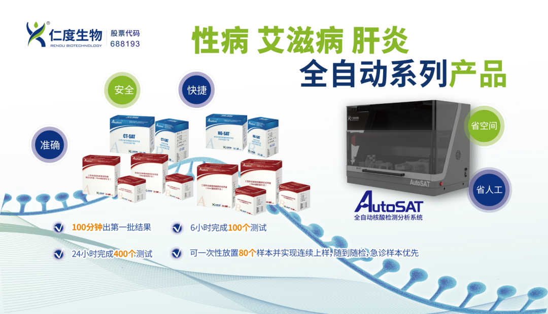 本次会议是我国艾滋病感染领域水平最高的学术盛会,届时大会将邀请国内外著名学者3000余位,就目前国内的艾滋病流行及防治情况、艾滋病诊疗相关的新技术、新产品开展相关的学术专题讨论。仁度生物将携HIV-1高敏定量检测、疾控线系列产品(HCV、CT、NG)以及新品全自动检测平台亮相学术盛会。以上RNA恒温扩增检测技术产品均可使用该设备或AutoSAT检测平台进行全自动检测,符合目前国家疾控提出的 “多病同防”策略,进一步统筹整合防控资源,推动艾滋病、病毒性肝炎等传染病的同防同治。