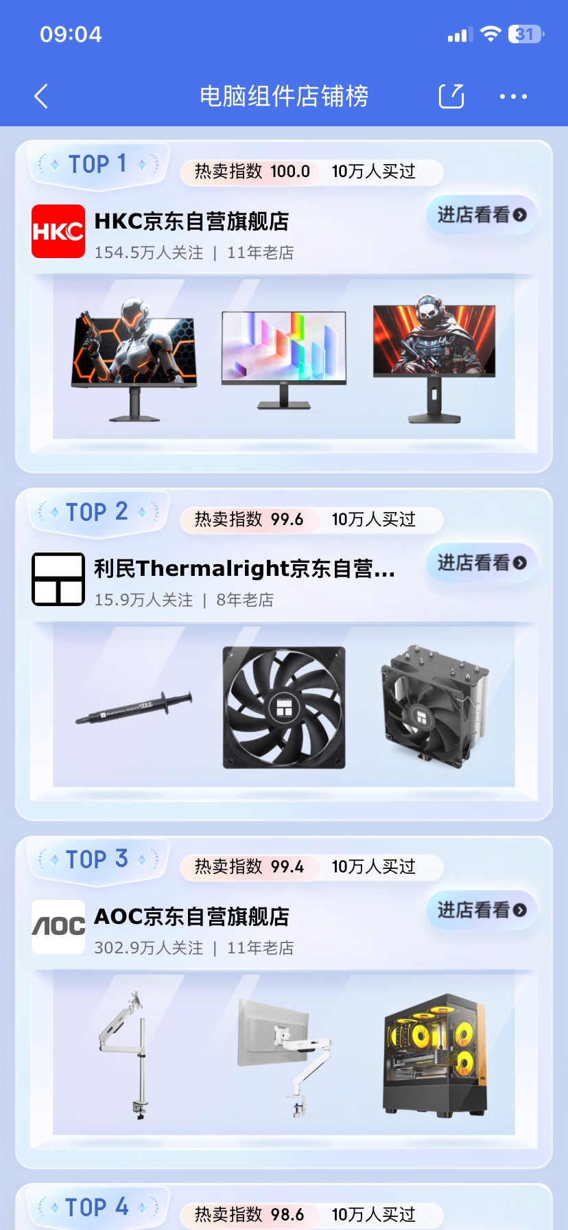 3. TOP3 AOC某东自营旗舰店:主营显示器、显示器支架、电脑机箱