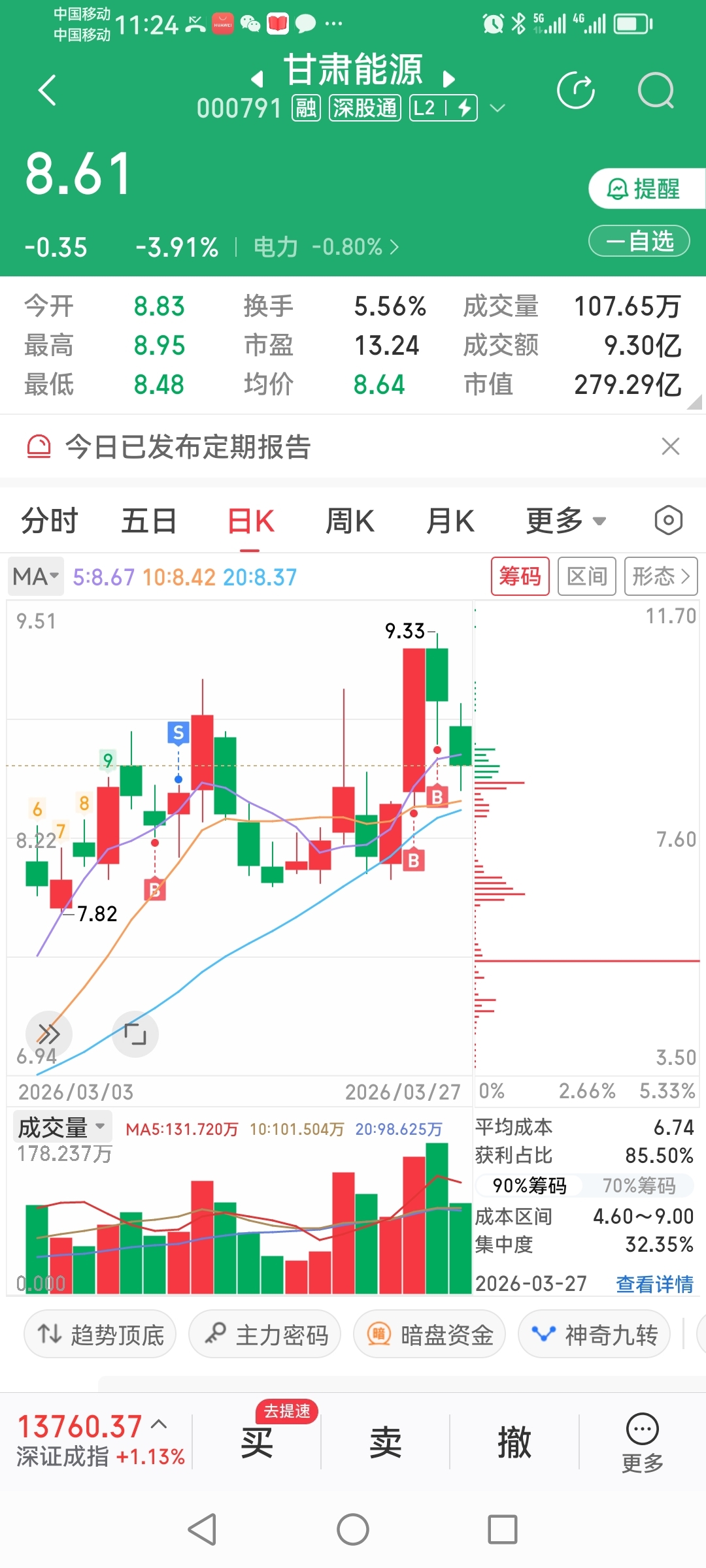 甘肃能源,这票主要也是避中东和年报的险。周三买入,周四加了点仓。周五还在回调,如果下周一有低点可以再加一点。这票一买入周末就发布了年报,符合预期。扣非净利润翻翻还是不错的。