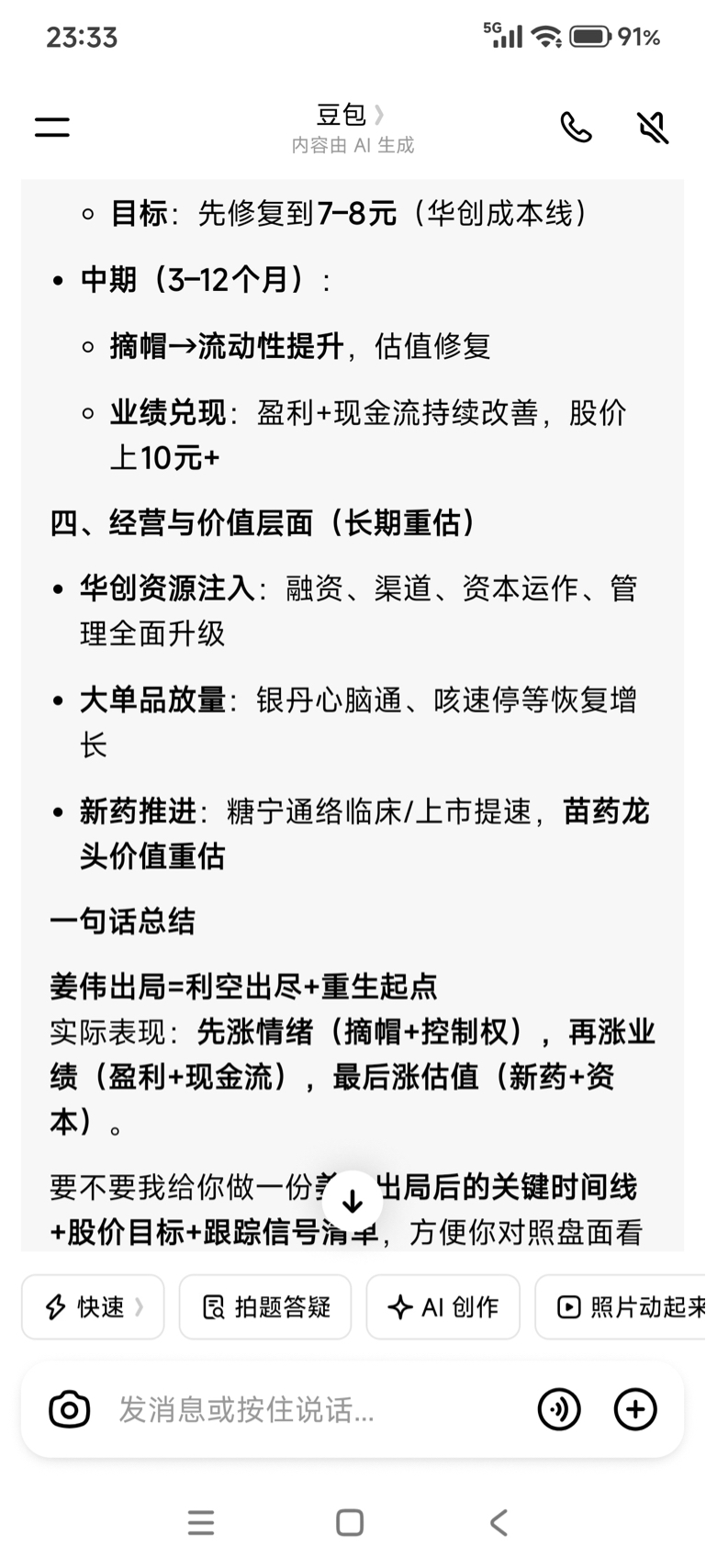 所以我非常认同人工智能的判断,姜伟董事长出局等于利空出尽加重生起点,,还有别忘了二股东在贵州省的人脉会引入国资以及央企进入加速公司股东治理层面的推进。我预计今年会实现先涨的情绪,因为会有摘帽以及控制权的变化,然后加上主业的一个回暖,最后加上大单品糖宁通络三期临床的通过,资本市场会重新分析看待贵州白领的估值。如果治疗糖尿病及其并发症的糖灵通络顺利通过期临床和上市他的市值是可以和$片仔癀(SH600436)$ $云南白药(SZ000538)$ 相提并论的。