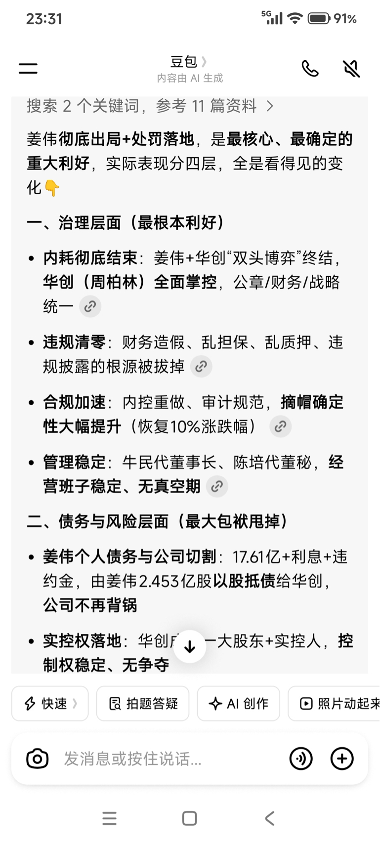 $ST百灵(SZ002424)$ 贵州百灵的几万股东终于迎来这一天。姜伟彻底出局,处罚落地这个最核心,最确定的重大利好,这个是股东们最担心公司治理层面的实质性利好,代表着内耗彻底结束,违规清零合规加速以及管理稳定的实质性内容,尤其对懂得贵州百灵人总担忧公司会退市,这个问题彻底的将会解决。尤其我对牛民董事长特别看好。看看人工智能怎么分析的。