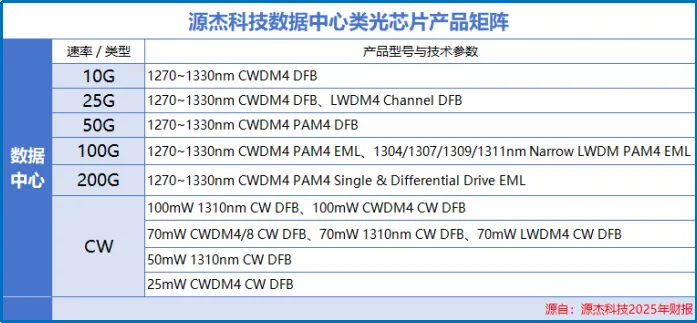 源杰科技精准预判趋势,针对400G/800G光模块需求,成功量产CW 70mW/100mW激光器芯片,2025年已经实现大批量出货,成为数据中心业务的核心增长引擎。