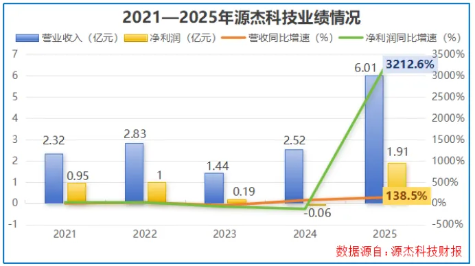 2025年全年,公司实现营业收入6.01亿元,同比大增138.5%;净利润达到1.91亿元,更是同比狂飙3212.6%。