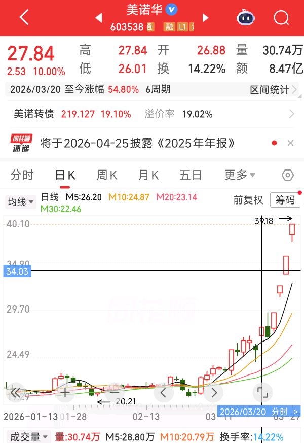 $美诺华(SH603538)$ 许多年后,当你我已实现财务自由,在悠闲的午后品茶畅谈,仍会眉飞色舞地提起2026年那一段传奇——第一大妖美诺华。