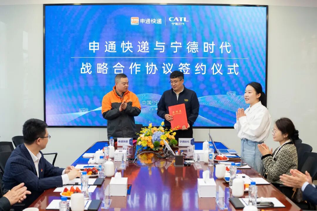 3 月 26 日,申通快递与宁德时代在福建宁德时代总部正式签署战略合作协议,双方将围绕党建共建、绿色物流、车辆电动化、充换电设施、电池全生命周期管理等领域展开深度协同,助力快递行业低碳转型与高质量发展。