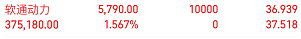 $软通动力(SZ301236)$:软通动力今天小幅下跌,走势中规中矩,平开低走,震荡下跌,开盘37.45元,最高37.68元,最低36.82元,收盘37.51元,跌了0.54元,跌幅1.42%,换手率1.54%。这个市盈率很高 估值偏高,这也是今天下跌的原因之一。而且这只股近三个月跌了19.70%,近一年跌了33.97%,近五年涨了59.75%,要是你持有底仓,今天有在37.60元附近减仓,明天回调到37.20元附近再补仓,继续做T短期走势不太好,大家一定要谨慎。