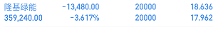 隆基绿能:今天这只股跟阳光电源一样,今天也跌了而且跌得有点多。早盘高开低走,一路下跌,开盘18.40元,最高18.57元,最低17.80元,收盘17.96元,跌了0.56元,跌幅3.02%,换手率2.87%。明天只要反弹到18.10元以上,就卖出补仓的部分,能挽回一部分损失,别硬扛。市盈率负的,不一定是说公司不行,就是暂时盈利不佳,不用恐慌,很多龙头股在调整期都会出现这种情况。