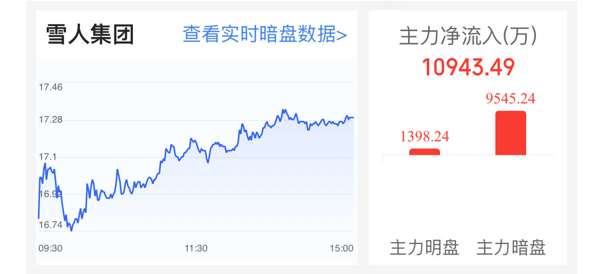 最新数据显示,雪人集团当日主力暗盘资金流入9545.24万元,主力明盘资金流入1398.24万元。明盘和暗盘资金同时呈现净流入状态,合计主力资金净流入1.09亿元,表明主力资金对该股持整体看多态度。从资金结构看,暗盘资金流入量显著高于明盘资金,显示主力可能通过分散交易的方式持续吸纳筹码,资金面呈现积极信号。