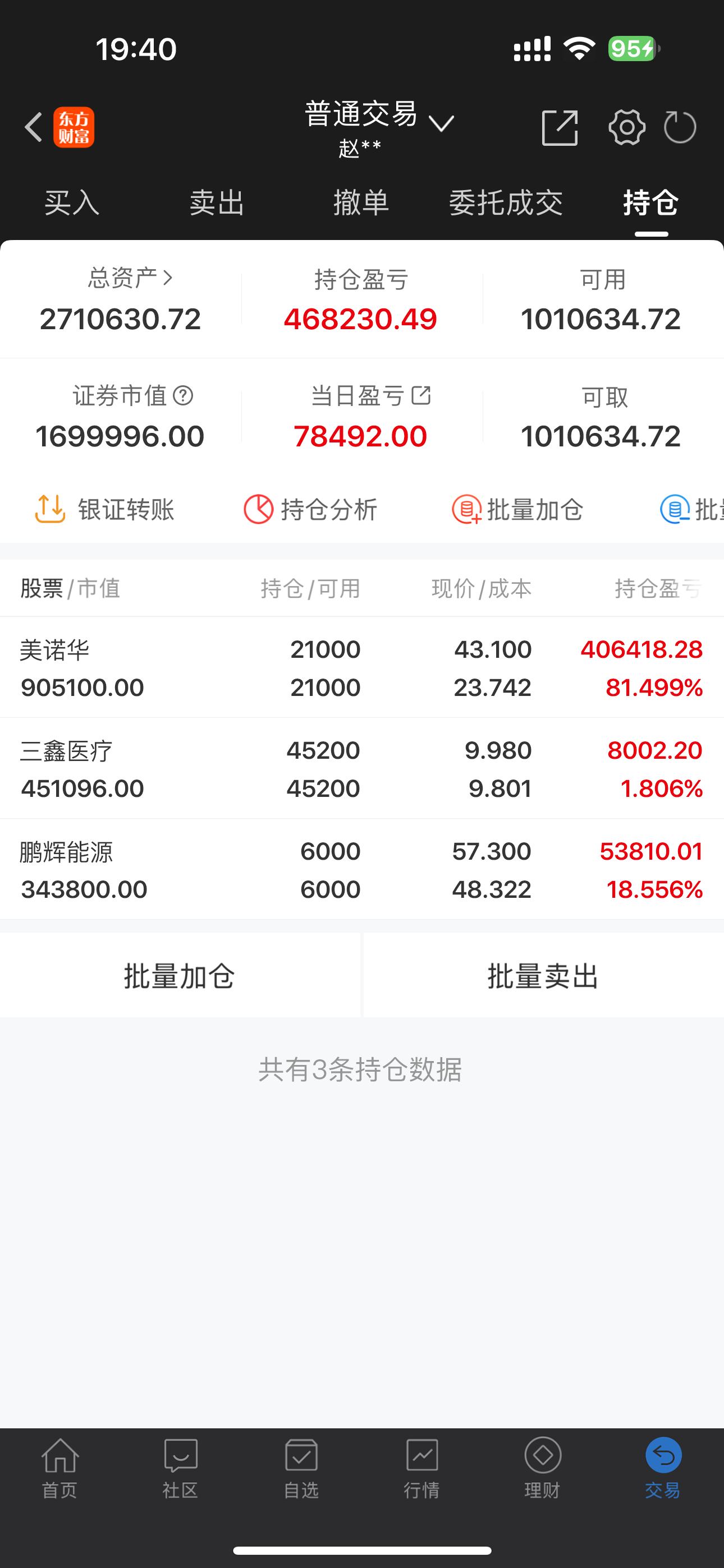 持有情况: