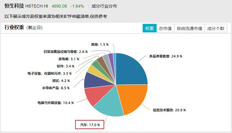汽车制造业-30.2%。别卷了兄弟们,恒生科技指数又快被你们卷到新低了。PS:恒生科技指数里第三大权重行业就是汽车,占比17%。