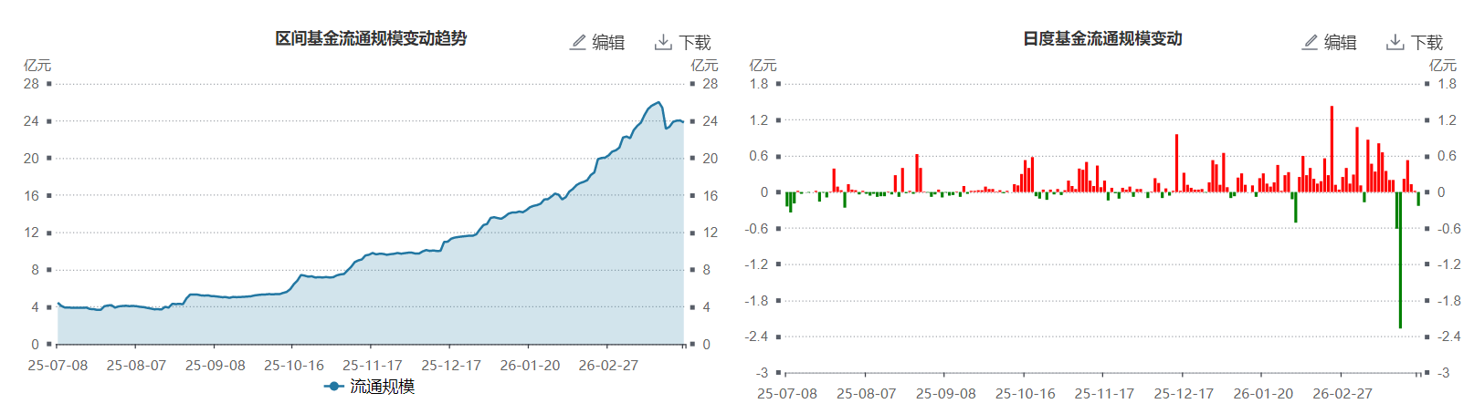 从市场资金“用脚投票”的情况来看,价值ETF易方达(159263) 持续获得市场资金的加仓,产品规模由2025年7月成立之初的4亿左右,大幅增长至目前的24亿左右。
