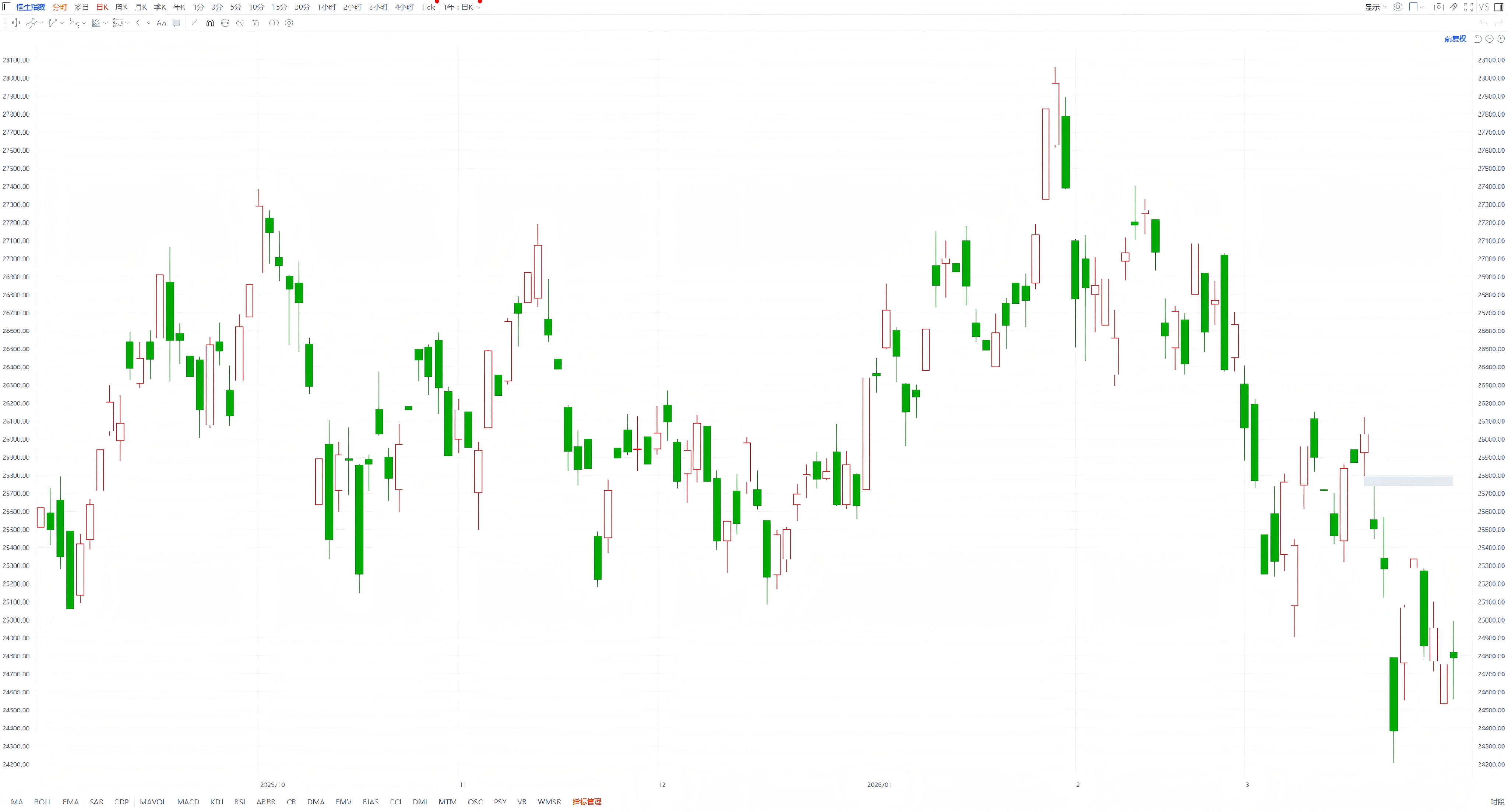 今天恒指开盘走高后迅速回落,最高摸到24988,离25000差口气就掉下来了,最后收在24788,刚好卡在多空价24781.10上面一点点。说白了今天这根阳线,更像个“弱反弹”,不是那种能让人踏实的反转信号 —— 资金根本不想往上冲,就跟挤牙膏似的,能蹭一点是一点。