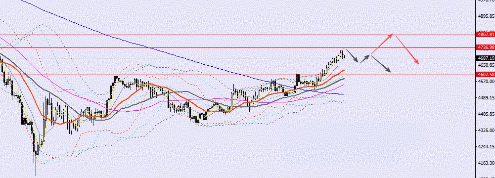 昨日有多单参与的,今日可在4700-30按计划再做减仓,亦可留有部分持单,带好保本止损的情况下再去搏4800预期。