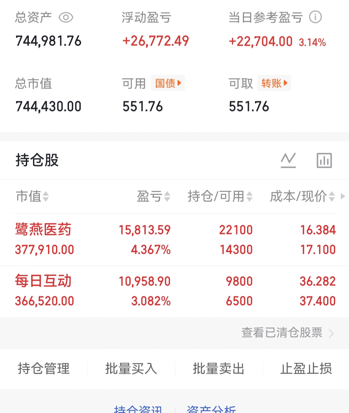 $鹭燕医药(SZ002788)$ $每日互动(SZ300766)$ #实盘记录#