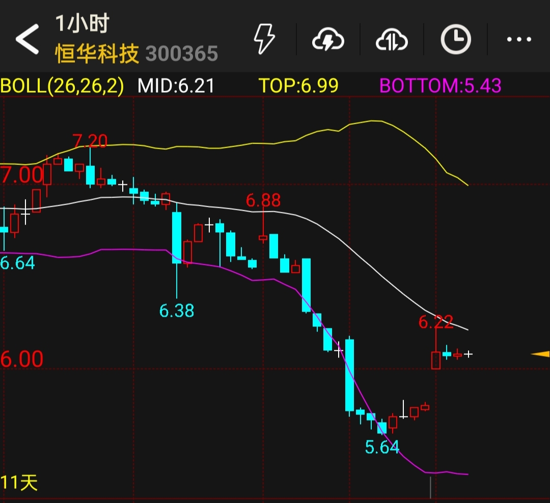 良信股份,今日最高价为9.79元,尾数带9,按布林1小时K线观察中轨价标明要见9.81元的,明日再观之看能否触及的?布林指标之用,多用下轨及中轨来指导,必能十次用九次胜。恒华科技,我以5.67元的顺子价买入,今日6.19元价卖出,尾数带9之价也。恒华科技中线持仓,必有6.78元的顺子价来相呼应。美原油短线大幅下跌后,其后必往布林1小时K线中轨上行走,沥青期货近月合约有300元至400元的一个反弹需求,下午沥青2608合约我挂了个3879元价的多单开仓,可惜成交不了,就看今晚夜盘的探底情况如何啦?