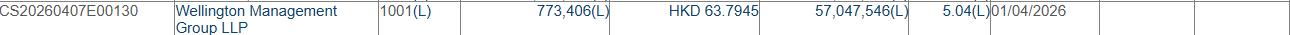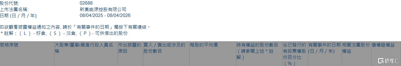 格隆汇4月8日丨根据联交所最新权益披露资料显示,2026年4月1日,新奥能源(02688.HK)获Wellington Management Group LLP在场内以每股均价63.7945港元增持77.34万股,涉资约4933.9万港元。
