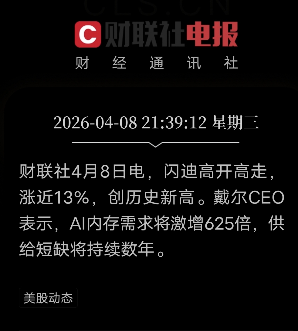 核心结论:AI正引爆存储“超级周期”。戴尔CEO迈克尔·戴尔以行业一线数据与精准逻辑,预判2028年AI内存需求将达2023年的625倍(25×25指数级增长)。对比此前行业“2-3倍缺口”的线性预期,此判断彻底重构供需格局——供给刚性、需求爆炸,2026年存储价格暴涨10倍并非空谈。