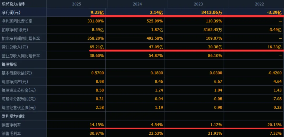 公司 2023-2025年分别实现营业收入30.38亿元/47.05亿元/65.21亿元,增长率依次为86.10%/54.87%/38.60%;实现归母净利润0.34亿元/2.14亿元/9.23亿元,增长率依次为110.39%/525.99%/331.80%。
