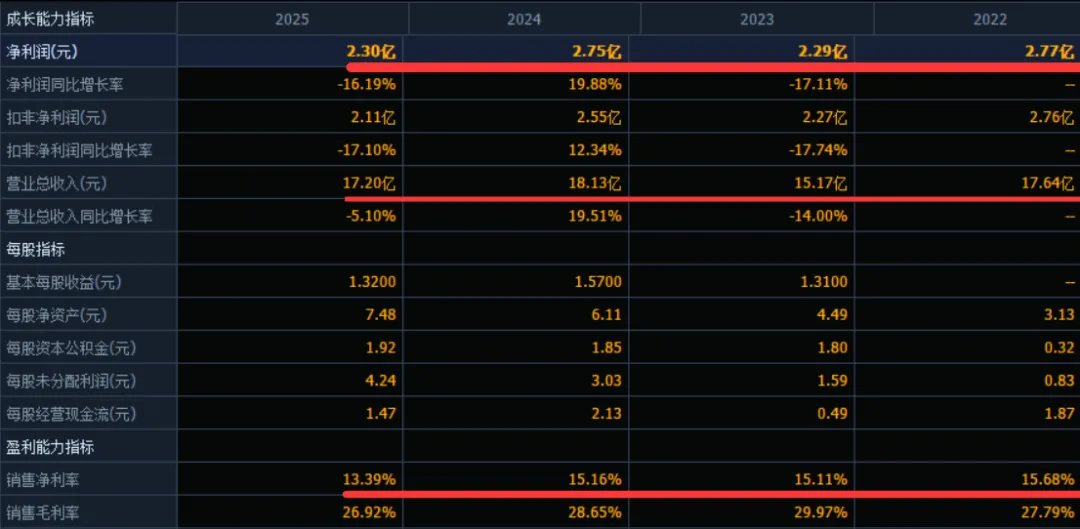 结论:建议申购,后期建议不关注。2023年,受全球服装行业去库存周期影响,公司营收同比下降14.00%至15.17亿元,归母净利润同比下降17.11%至2.29亿元。2024年,伴随下游需求复苏及公司再生面料业务持续放量,营收恢复增长至18.13亿元,同比增长19.51%,归母净利润同比增长19.88%至2.75亿元,为报告期内盈利峰值。2025年,受宏观消费环境趋弱及部分品牌客户调整采购节奏影响,公司营收同比小幅下降5.10%至17.20亿元,归母净利润同比下降16.19%至2.30亿元。