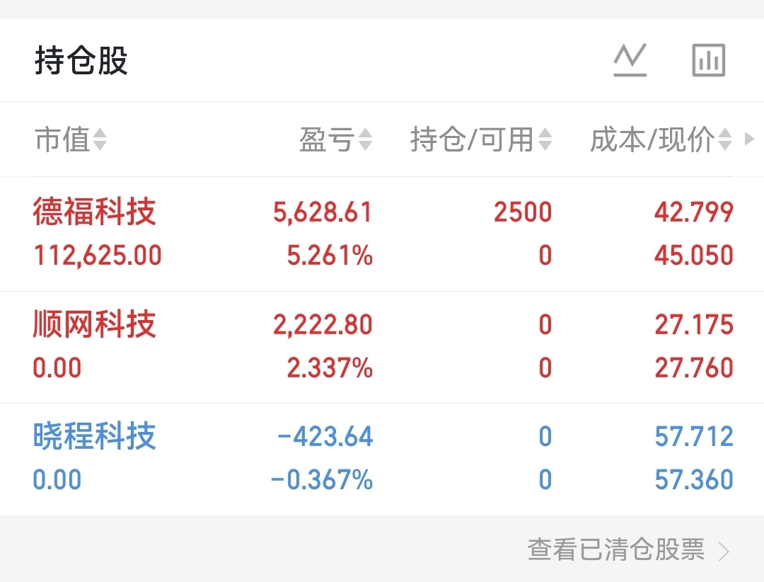 $德福科技(SZ301511)$ $顺网科技(SZ300113)$ $晓程科技(SZ300139)$ 【10W实盘记录|第39天】