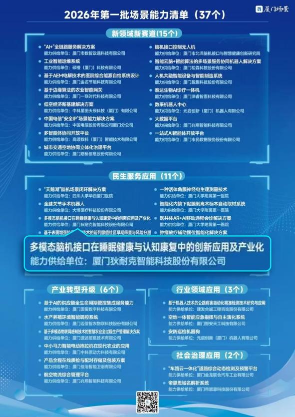 狄耐克申报的《多模态脑机接口在睡眠健康与认知康复中的创新应用及产业化》项目成功入选厦门市发改委首次正式公开的厦门场景清单。
