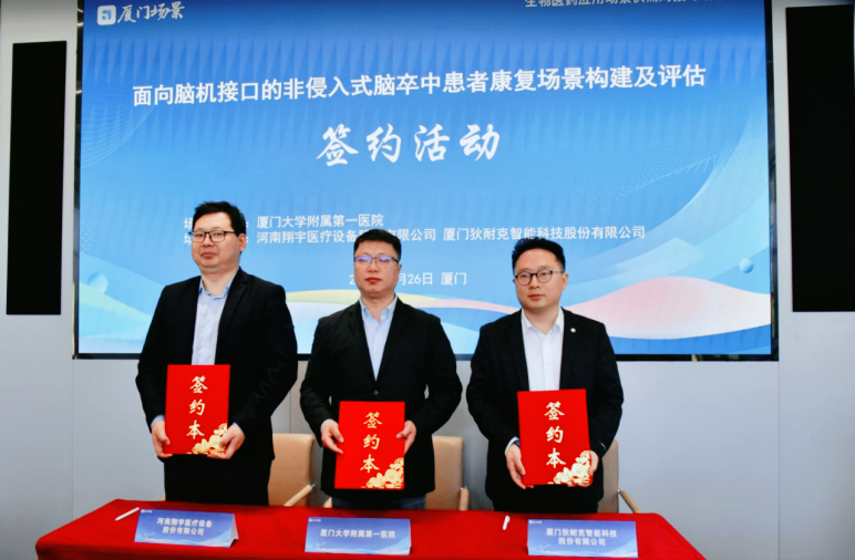 狄耐克受邀参会,并在与会嘉宾的共同见证下,与厦门大学附属第一医院正式达成合作签约。双方将共同启动“面向脑机接口的非侵入式脑卒中患者康复场景构建及评估”项目。