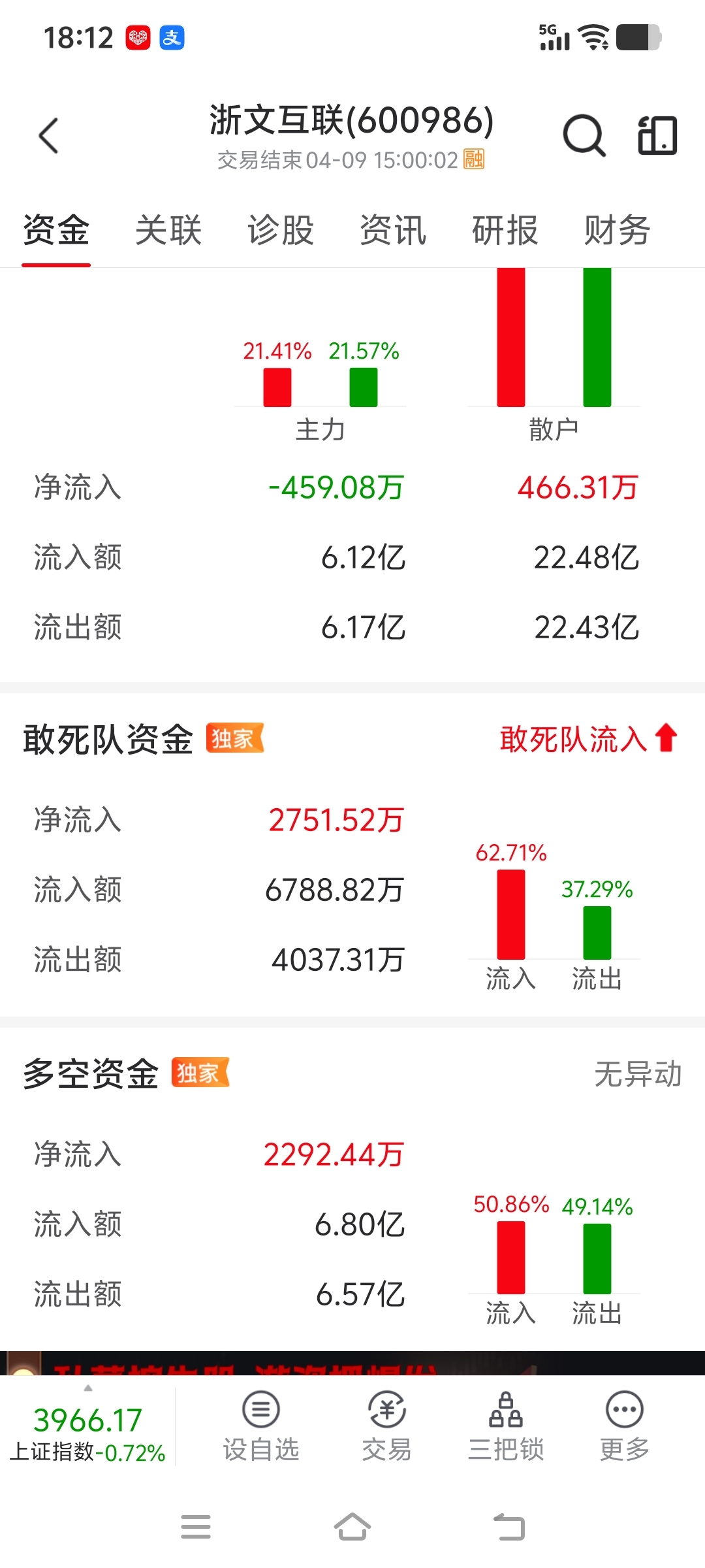 资金情况,从指南针指标看主力资金流出,敢死队资金大幅度流入,总体资金流入,说明主力有出货迹象,柚子机构大幅度买入,资金存在分歧!