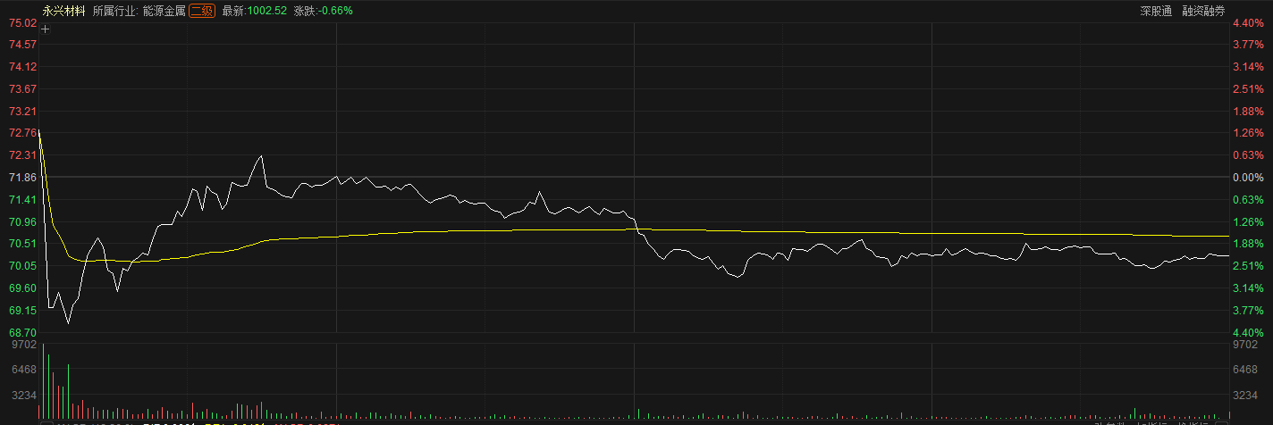 今日高开高摸至72.84元后震荡走弱,最低下探68.70元并跌破69元支撑,收盘70.25元,放量下跌。走势与低开下探、71.5 元遇压、69元未破的预判完全相反,短线偏弱,需关注68.5元支撑能否企稳。