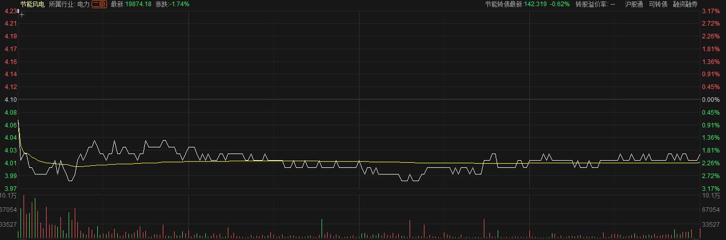 节能风电今日高开低走、单边弱势,全天在3.97—4.07元区间运行。4.00元支撑失守,上方4.07元即遇阻,短线偏弱震荡,量能同比萎缩。