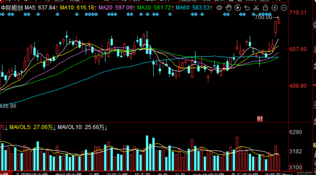 今天中际旭创盘中股价打到了700整,短期的对子顶压力位,目前CPO还在加速,怕高都是苦命人啊....