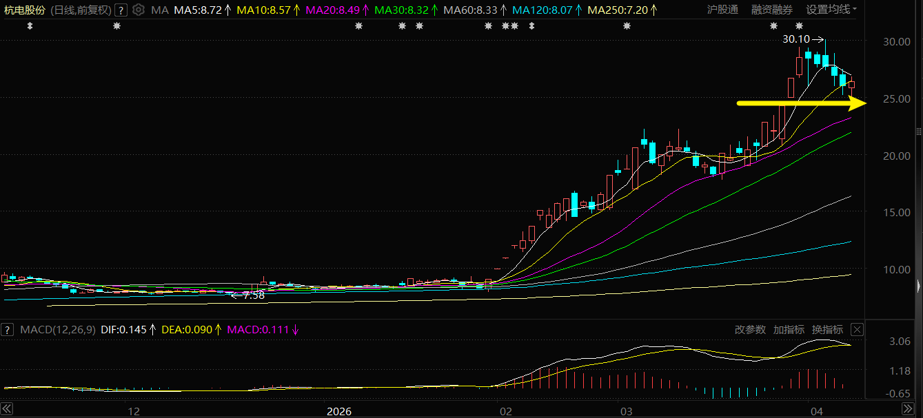 基本面与消息面:公司是国家电网、南方电网核心供应商,具备特高压电缆全谱系生产资质,深度绑定 “十四五” 特高压建设高峰。光通信业务通过子公司富春江光电实现全产业链布局,受益于 AI 算力爆发与数据中心建设需求。新能源铜箔业务是核心增长极,4.5μm 超薄锂电铜箔已量产,通过宁德时代二供认证,2026 年产能释放将贡献显著增量。公司 2026 年 Q1 订单同比增长 63%,线缆业务盈利修复,光通信业务扭亏,经营性现金流由负转正,成长拐点明确。