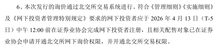 6. 拟参加网下询价开通权限的截止日期是:2026年4月13日。