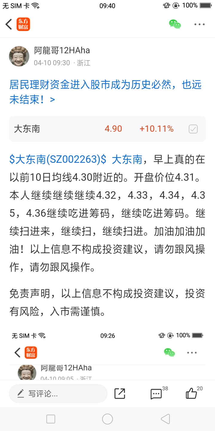 $大东南(SZ002263)$ 大东南,喷子们快点出来喷喷本人呀!无敌真的是太寂寞了。龙抬头,龙抬头,什么叫做龙抬头,你们研究的明白吗,请各位喷子们多翻翻我的帖子。不要一上来就喷,一上来就喷,显得你无能,连过程不了解,一上来就乱喷。本人没有这个把握,也不能上梁山。逼上梁山,逼上梁山,懂不懂?