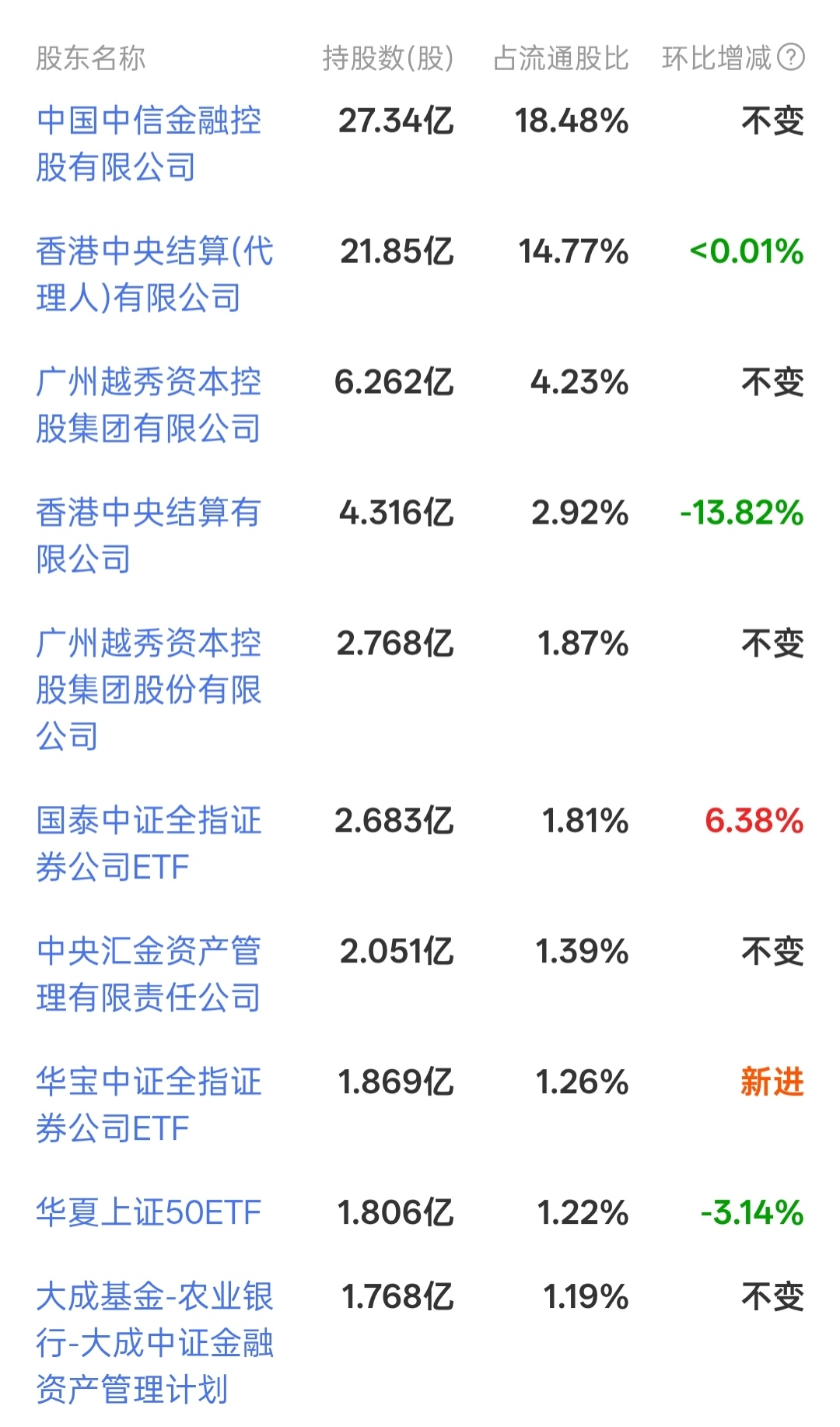 - 控股股东:中国中信金融控股有限公司,持股比例18.48%。