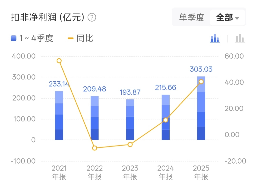 - 2025年业绩创历史新高,归母净利润突破300亿元,同比增长38.58%。