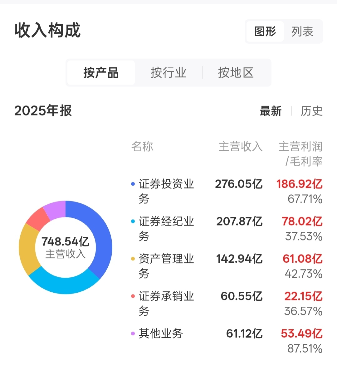 中信证券属于资本市场服务行业,是国内证券行业的绝对龙头,被誉为“券商一哥”。公司在投资银行、资产管理、证券经纪、自营投资等核心业务领域均稳居行业前列。2025年,公司投行业务承销金额、资产管理规模、经纪业务市场份额等关键指标均排名行业第一,是国内唯一一家资产规模突破2万亿元的证券公司,综合竞争力持续领先。