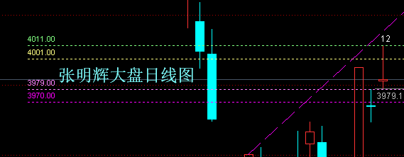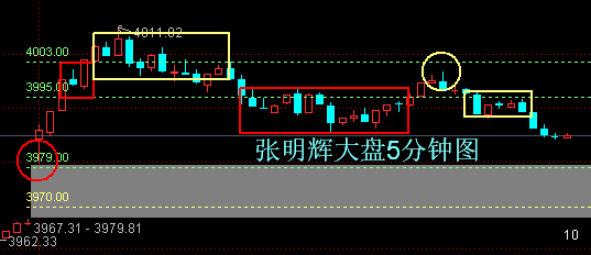 验证:周五大盘走势完全符合补充提示所述。具体为:大盘早盘果然跳空高开,之后先回头精准踩了一脚3979点压力位,精准到一点不差!然后就一路高走一口气突破了3995点和4003点两道新增压力位,接着就回头并围绕4003点展开了一个多小时的震荡争夺走势。在有效失守以后,又下去围绕3995点展开着反复震荡争夺走势。直到临近尾盘确认争夺失败,最后尾盘报收于3986点。成交金额9557亿,比前一日明显放量。